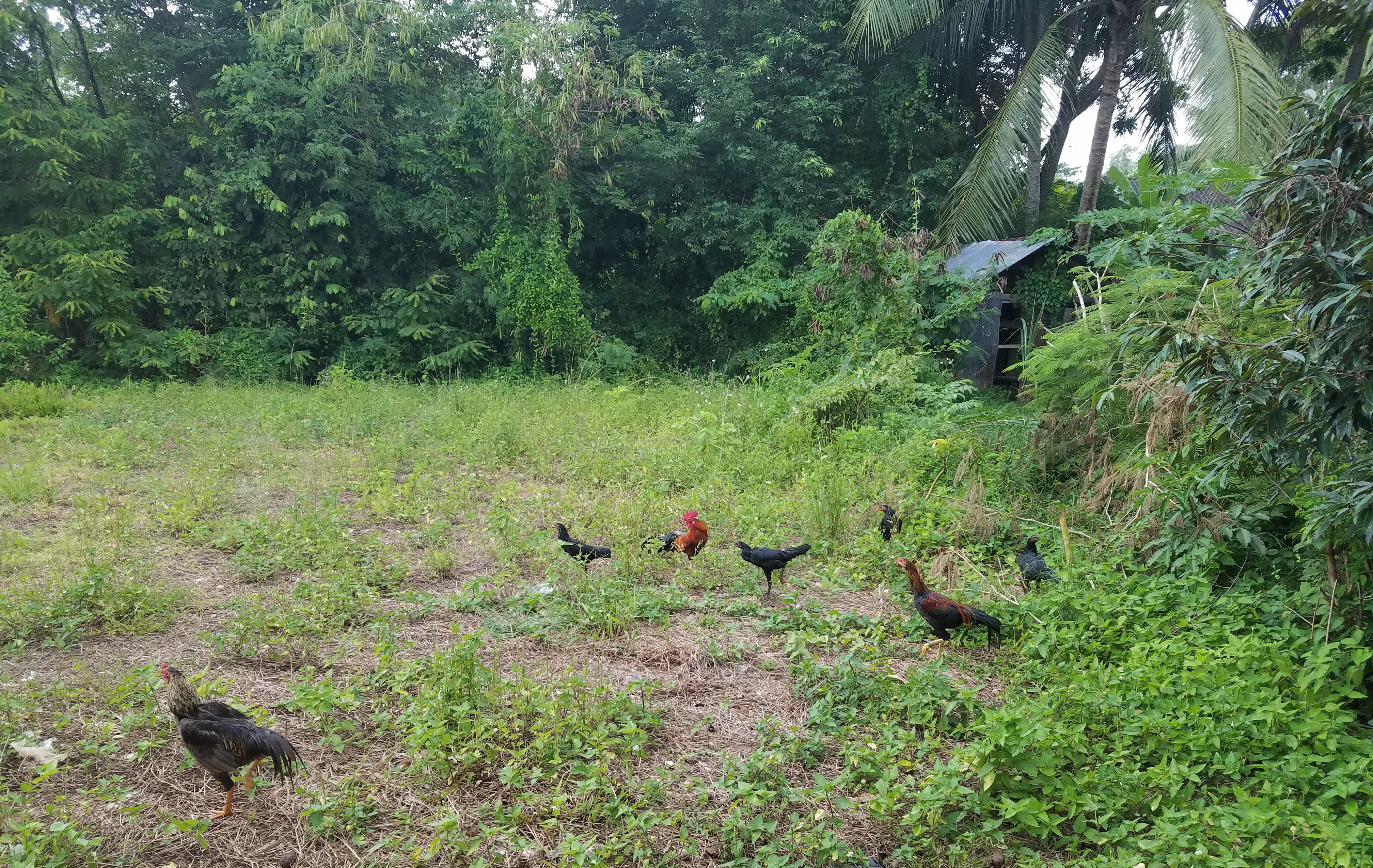 Months ago, I noticed that there was a group of chickens that would sometimes wander behind my house. “That’s so Thailand,” I thought to myself feeling wonderment that chickens just roam freely behind my house of all places! They were once and awhile friends that kept me company while I washed the dishes, did my laundry and took in the views of my backyard, until they decided to make the tree right behind my house their permanent place of residence.