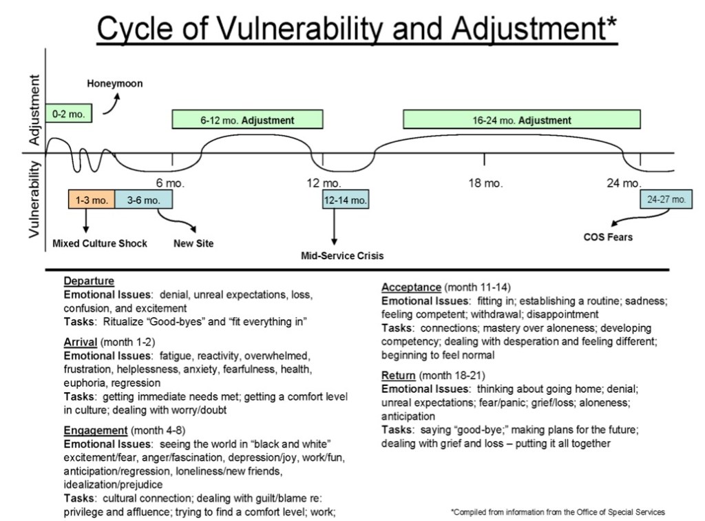 Thinking back to PST when Kathryn gave all of the PCTs the Cycle of Vulnerability and Adjustment, I remember thinking to myself: “This won’t affect me nearly as much as it will other PCVs.” I wasn’t being arrogant. Truly. I honestly thought that my coping mechanisms had been tried thoroughly before.