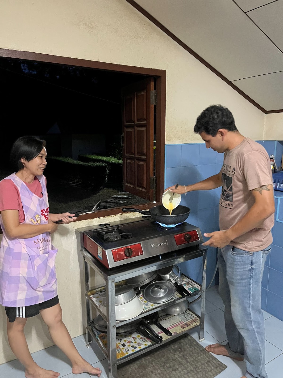 We stopped at a coworker, P’Gop’s, house for dinner where Dito showed off his culinary skills and whipped up some of his “world famous” scrambled eggs while P’Gop (she has amazing “fun aunt” vibes), critiqued his method and we laughed a lot. We spent hours there just chatting with her and she filled in the blanks for our plans the next day by offering to take us to Nam Nao National Park!