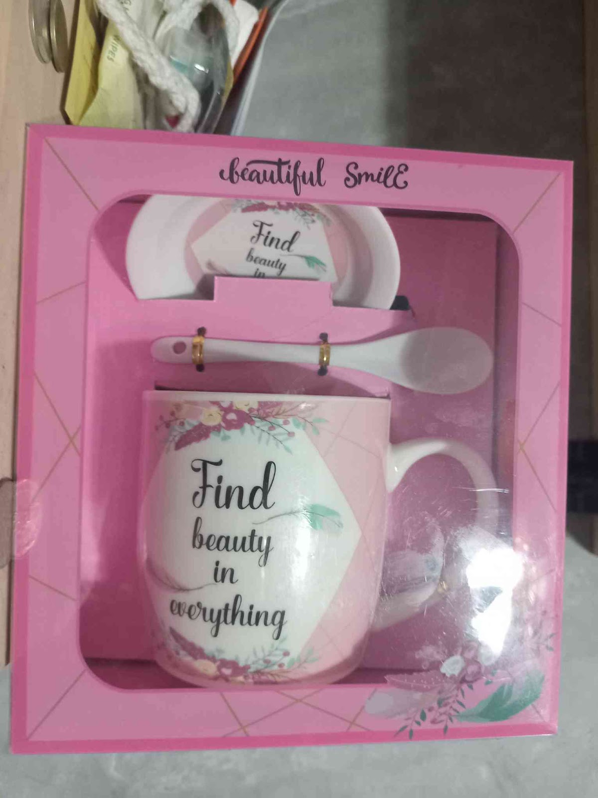 This was given to my Mae for her retirement (she got at least four sets of glasses, and probably five or so special mugs like this.) A lot of the dish ware here seems to have English phrases, which does sort of baffle me, as I know no one in my family can read what they say, but again, I can’t help but be grateful for them, because I certainly enjoy the reminders from time to time!