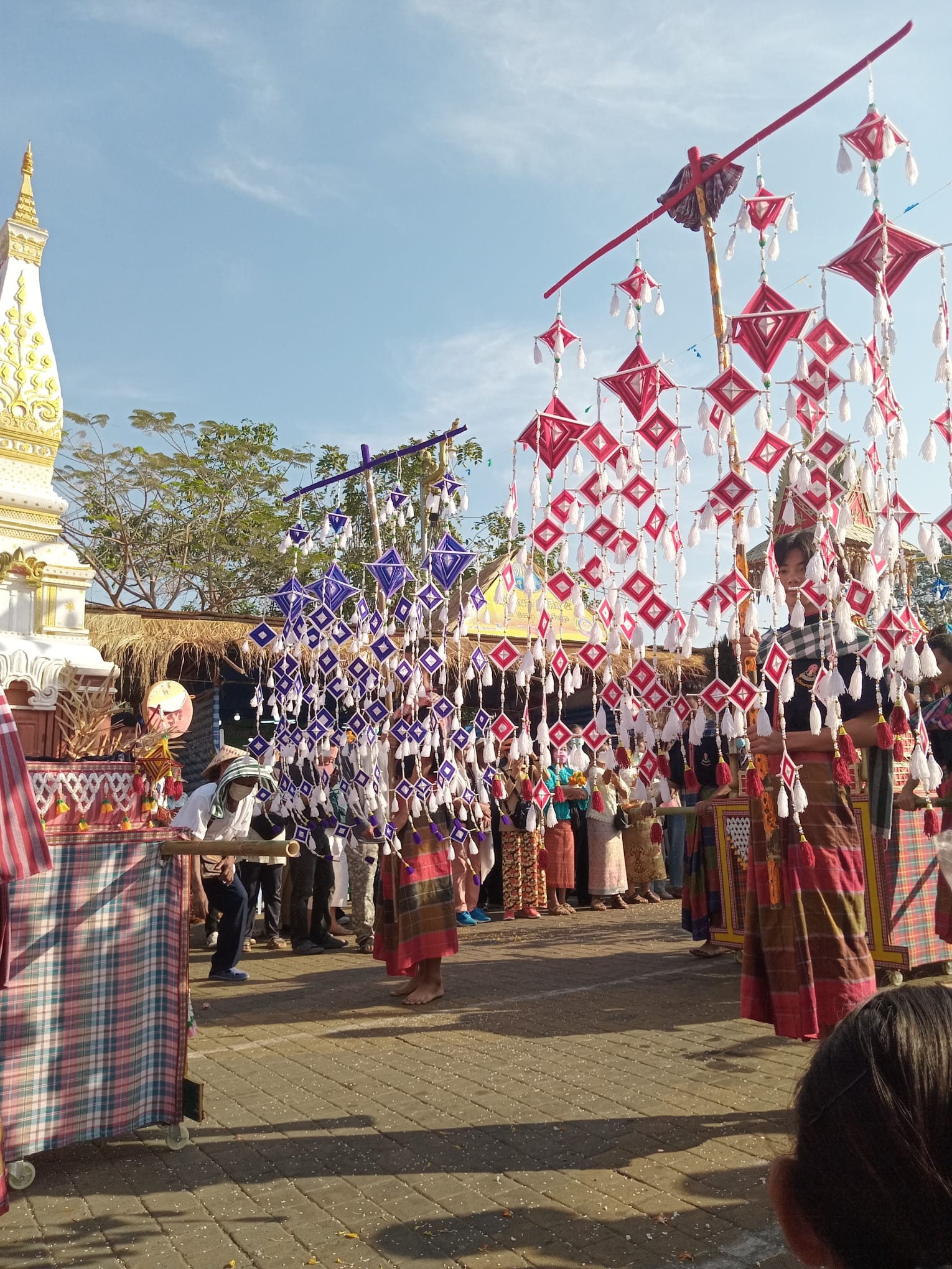 At my site, I frequently see these stick and string crafts that remind me of something I might have once made when I was a kid, except they’re so much more intricate and beautiful, and stringing multiple together makes for a wonderful hanging decoration. The people at my site say they’re Laotian, or at least Isaan, so I haven’t seen them as much in other parts of Thailand. They call them Tungs, and use them to decorate just about everything! I see them at Wats, retirement parties, tourist attractions, cultural festivals, and more.