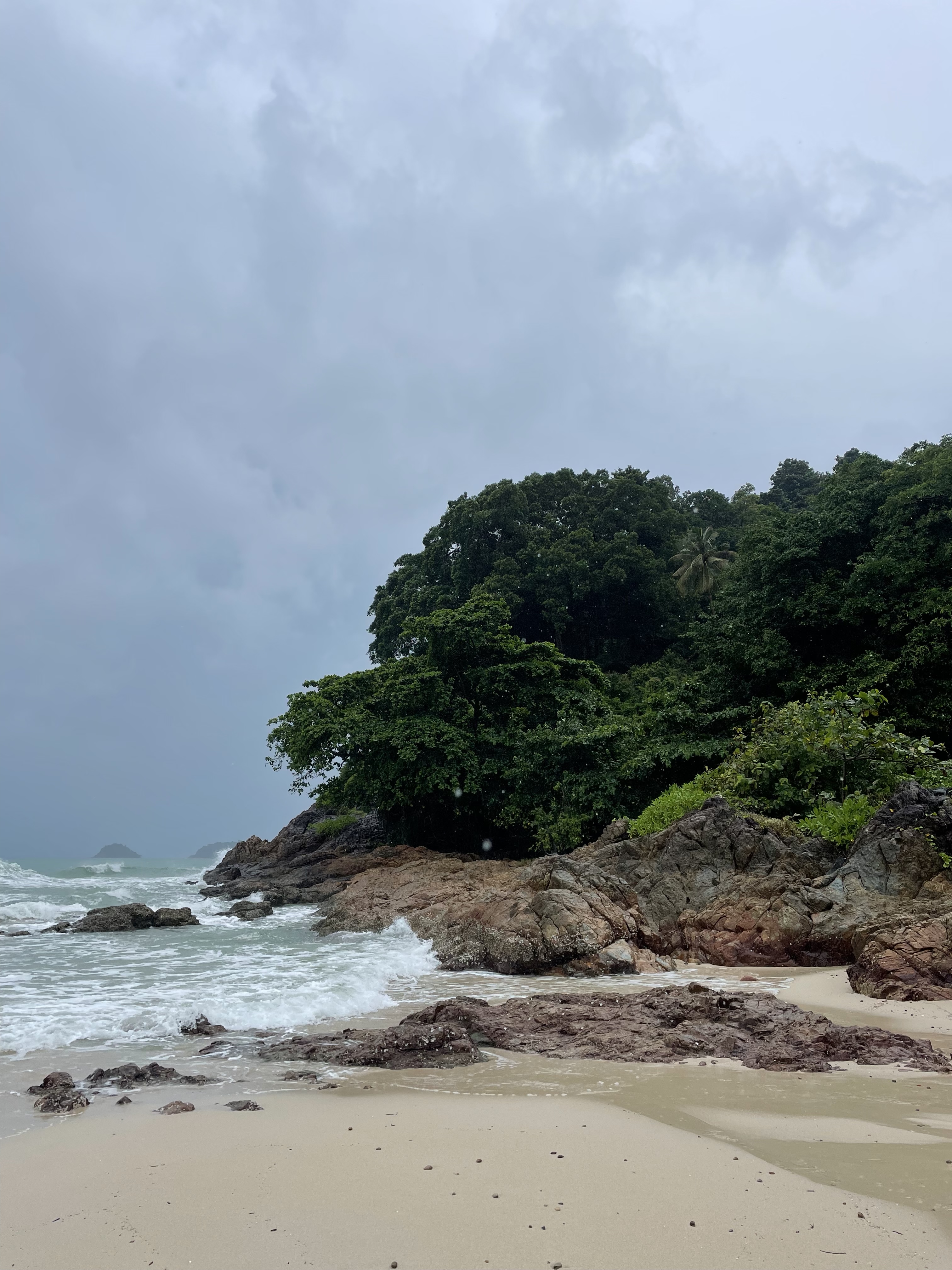 The moment I stepped foot off the ferry, I was whisked away into my own private plot of castaway. The roads on the island arced and climbed in steep curves that tossed me around in the back of a songtaew going down the road at a breakneck speed. The pouring rain and deep puddles lining the mountainous roads didn’t help. The hostel I had booked on (the aptly named) Lonely Beach had nearly 100 beds but ended up with a population of one: me. The plethora of restaurants I had pinned beforehand on my Google Maps turned out to be mostly shuttered or simply gone. And the empty beaches, although stunning, were turned to mud and churned by the moody gray seas.
