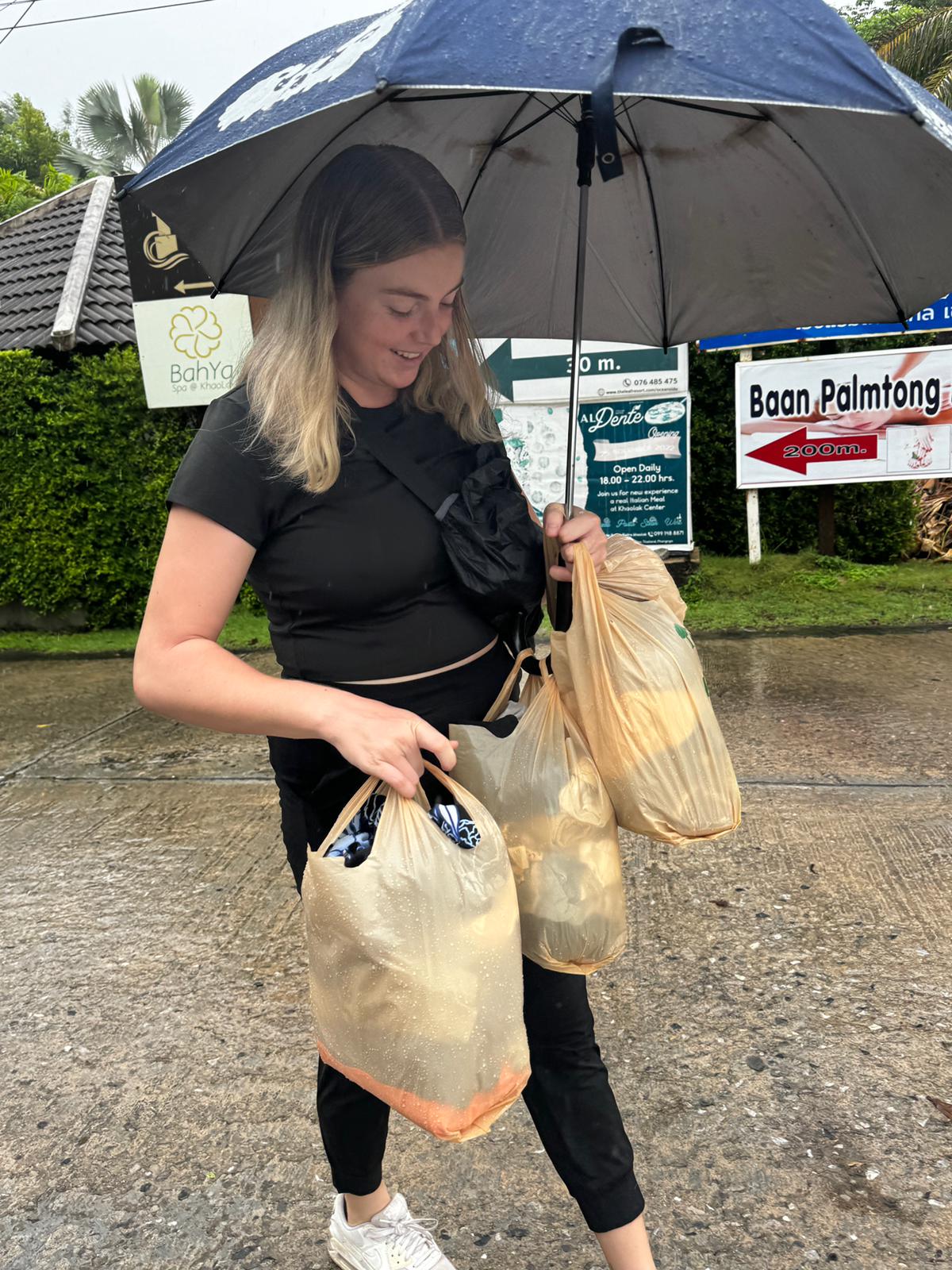 Samantha: Day 3, our free day in town was spent wandering aimlessly about searching for a laundry facility, which did not exist – you can’t always trust Google Maps in Thailand. Poor Alyssa had the most clothes and struggled with the added task of carrying an umbrella.