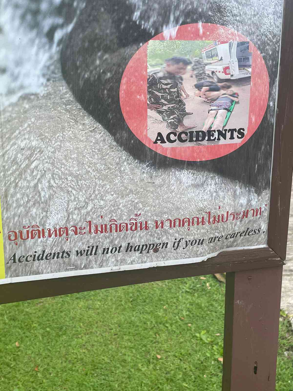 Grace sent this to me, and I had to laugh. Careless means to not take care and thus is already negative, but it doesn’t look negative if you don’t know what ‘less’ means! So instead of a good sign warning against being careless for fear of accidents, we get a sign that seems to sum up my experience with a good chunk of Thai drivers (especially those on motorcycles!) who seem convinced of their invincibility and thus do not take care, for accidents will not happen to them.