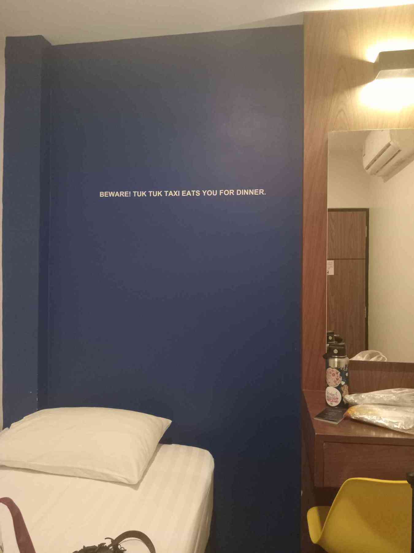 Excellent use of English to decorate the otherwise bland room, and really shows how fun and creative English can be. Of course, since this hostel was called Tuk Tuk Hostel, I definitely kept an ear open while I slept, just in case there were wild, man-eating taxis roaming the halls. I didn’t hear any!
