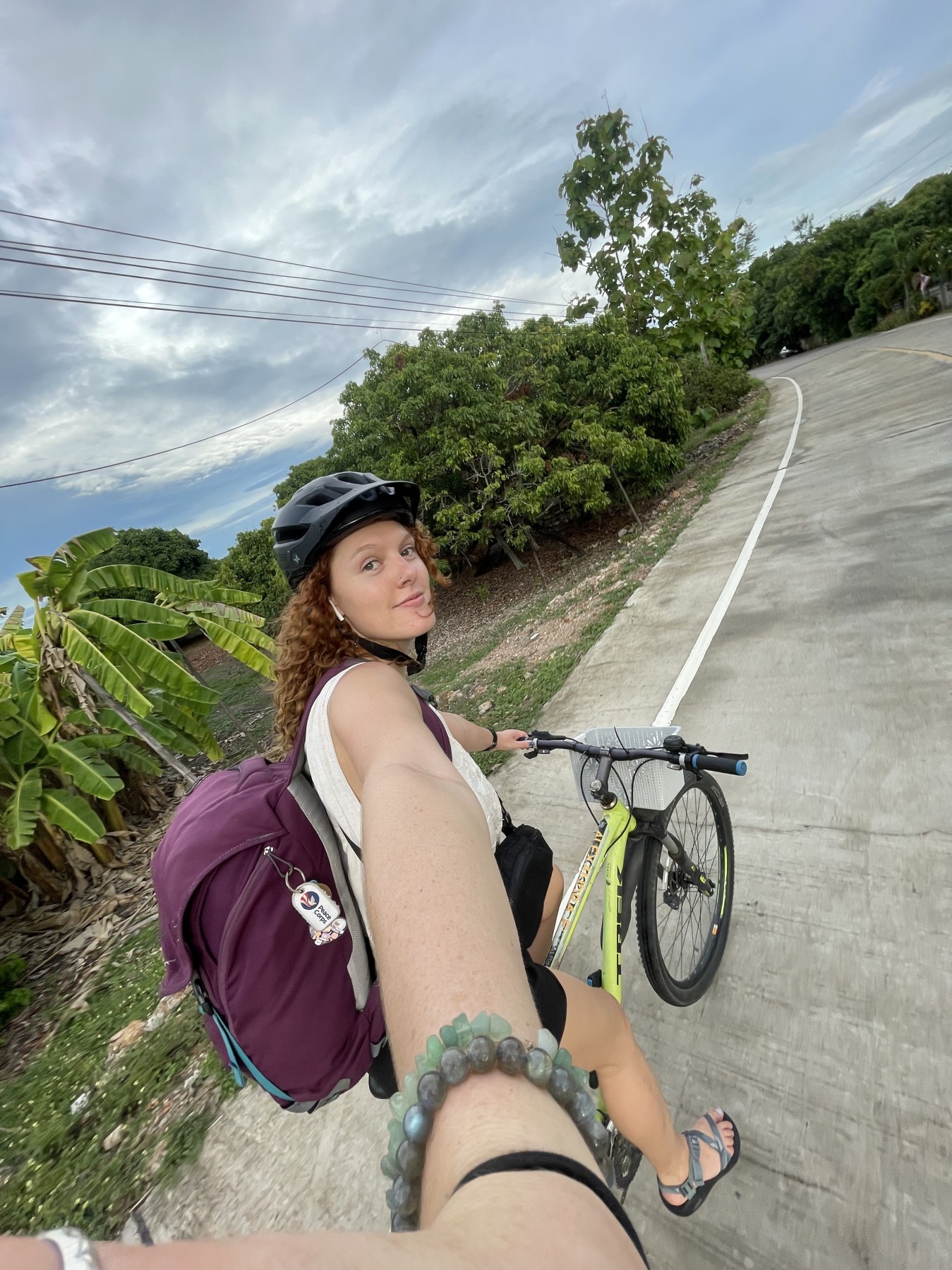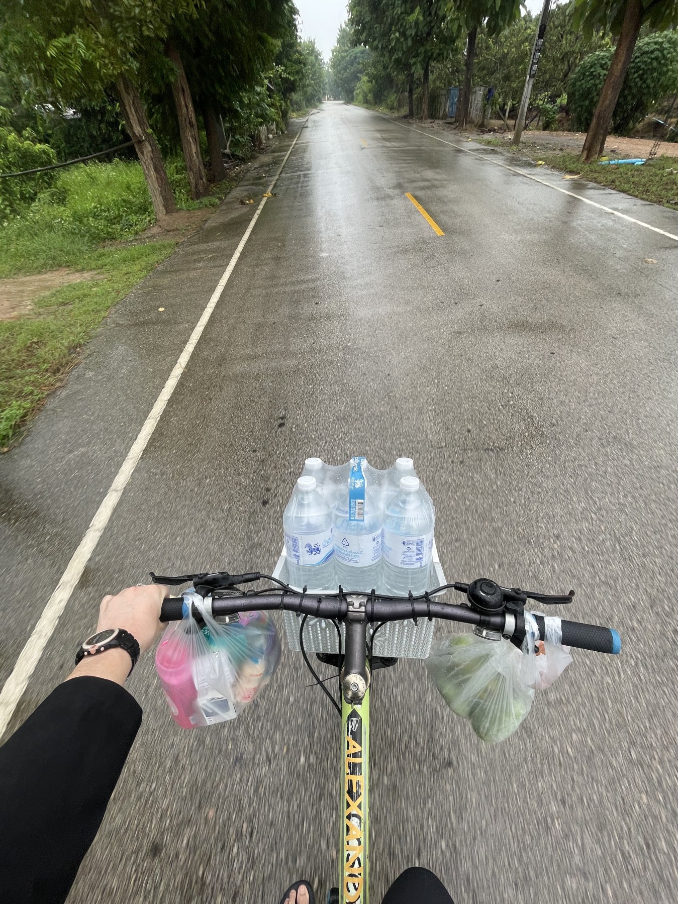 Kiki has shown me the world–within about a 10km radius of my house, of course. It may not sound like much, but this area includes all 5 of my schools, a river, a delicious khao soi restaurant, several idyllic cafes, a gym, and most importantly, not 1, not 2, but 3 7-Elevens. Seeing my students run up to ring my bike bell and comment on how tall it is, never fails to make me laugh. Tetris-ing my groceries into my little basket keeps me on my toes. This bike represents freedom and autonomy. She reminds me of the joy of a slow life. With Kiki, I can take in the beauty around me as individual trees and flowers, rather than just a green blur.