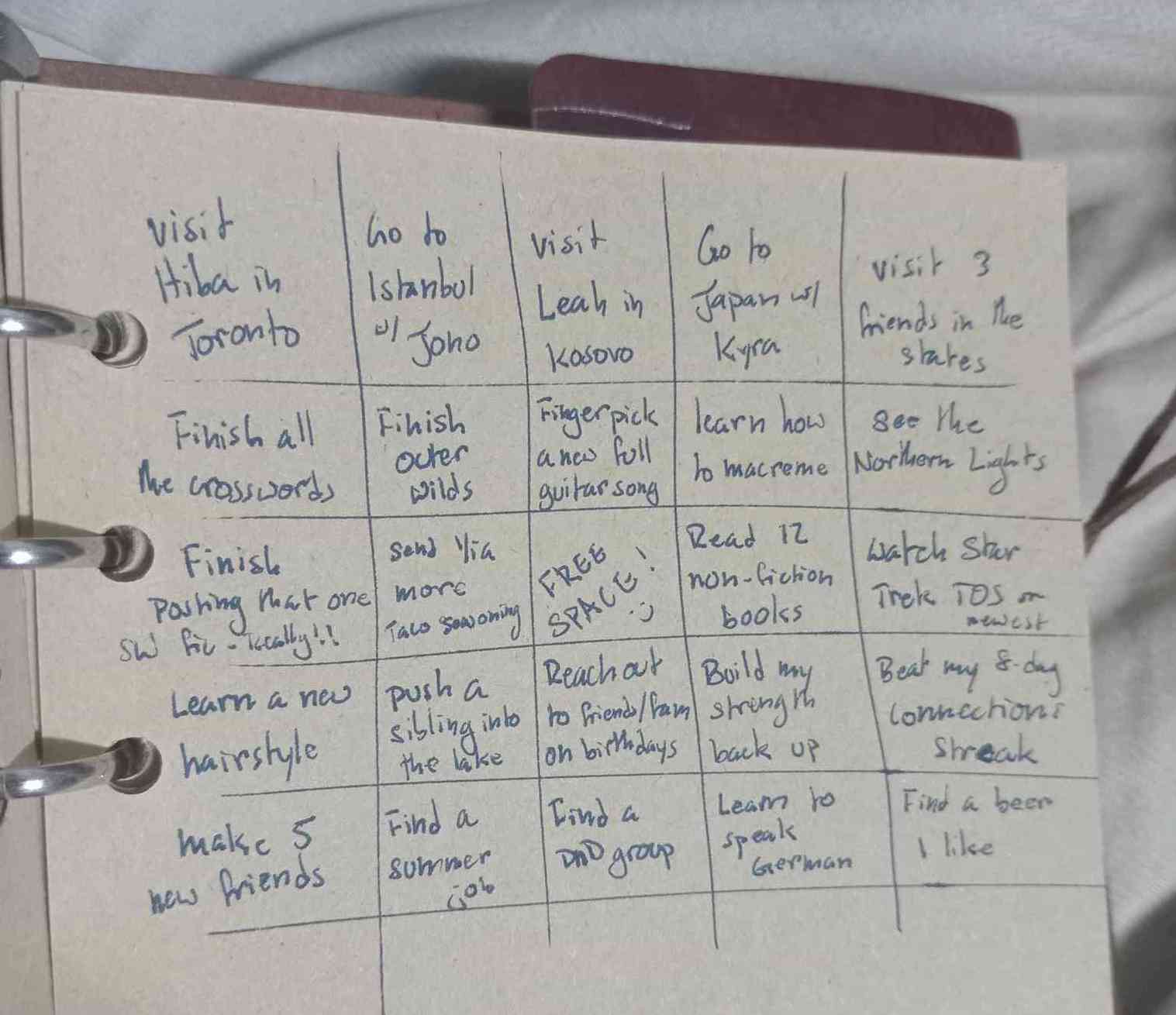 Some goals, like learning macrame, are ones I’ve been interested in for a while, but never really made time for. I don’t know if I’ll have time for them in 2025, but if it’s the only thing keeping me from a bingo, hopefully I’ll at least be a little more motivated to start working towards them. So I’m definitely happy Kyra and I did this together. And if a little bit of happiness and a little bit of motivation are indicative of how the rest of the year is going to go … I think this next year has lots of good things in store!