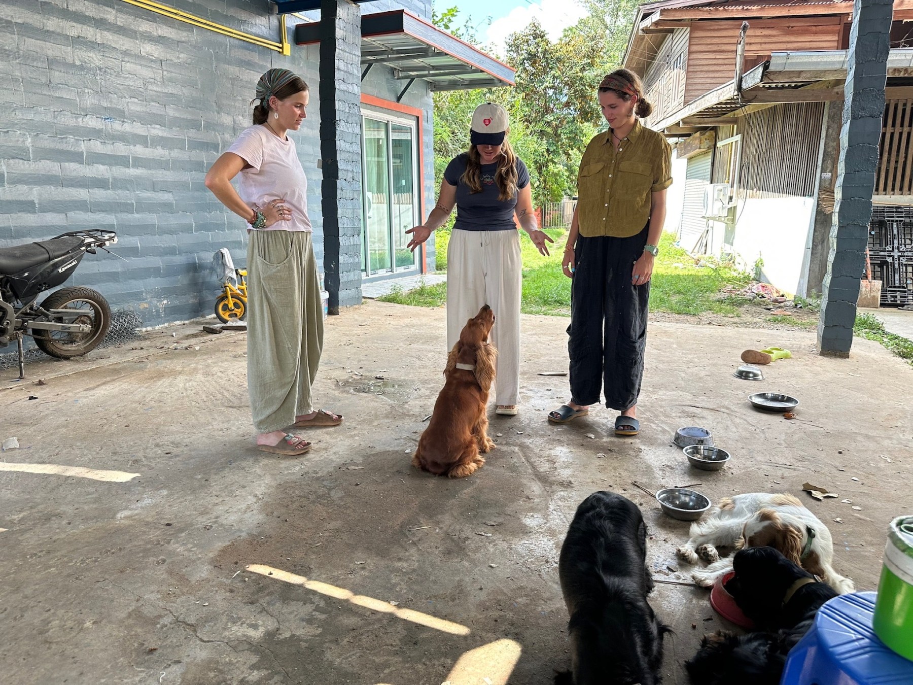 The next morning, we popped over to the neighborhood shop for chicken-on-a-stick to eat with our sticky rice and coffee. Fueled up, we hopped back on our bikes for a ride through the rice fields and into the rubber tree forest. We spent some time making TikToks and lounging on hammocks. On our way back, a big dog was sitting on the back of a motorcycle staring at us, and we laughed so much all the way home.